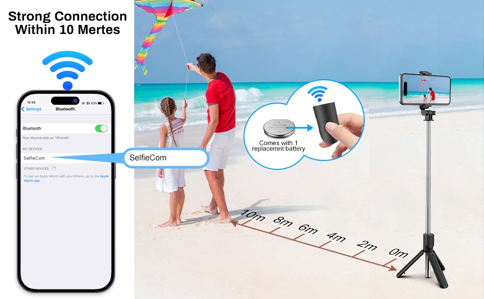 - Estabilidad mejorada: Al no tocar directamente el teléfono, reduces la posibilidad de movimientos bruscos que puedan provocar fotos borrosas o videos temblorosos. El control remoto te permite capturar imágenes más nítidas y estables.